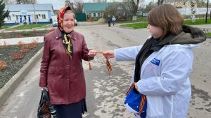 Более сотни георгиевских ленточек раздали прохожим в Сараях