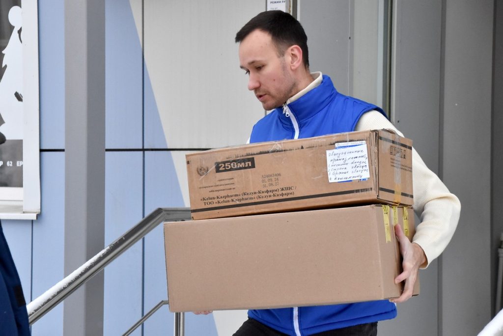 С собой волонтеры взяли по запросу госпиталя предметы первой необходимости, средства гигиены, продукты и хозяйственные принадлежности.