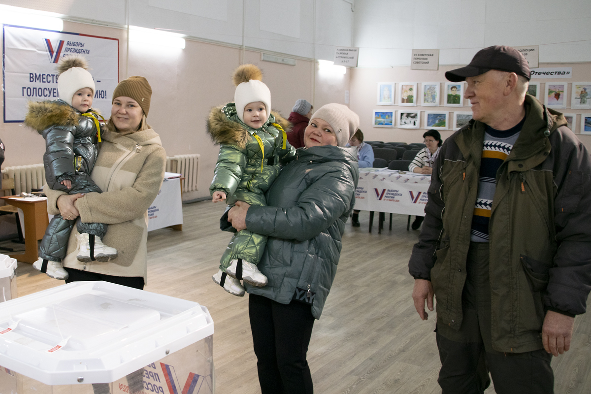 Люди голосуют охотно, многие приходят семьями, явка хорошая, активно голосует молодежь.