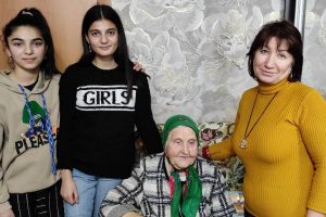 Бабу Шуру вместе с Валентиной Шкариной поздравили директор Кисьвянского Дома культуры Елена Маркина и ее юные подопечные София Сайфулова и Ясмина Назирова.