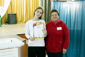 Председатель УИК Светлана Семенова поздравила девушку и вручила Алене Складчиковой диплом «Голосую в первый раз».