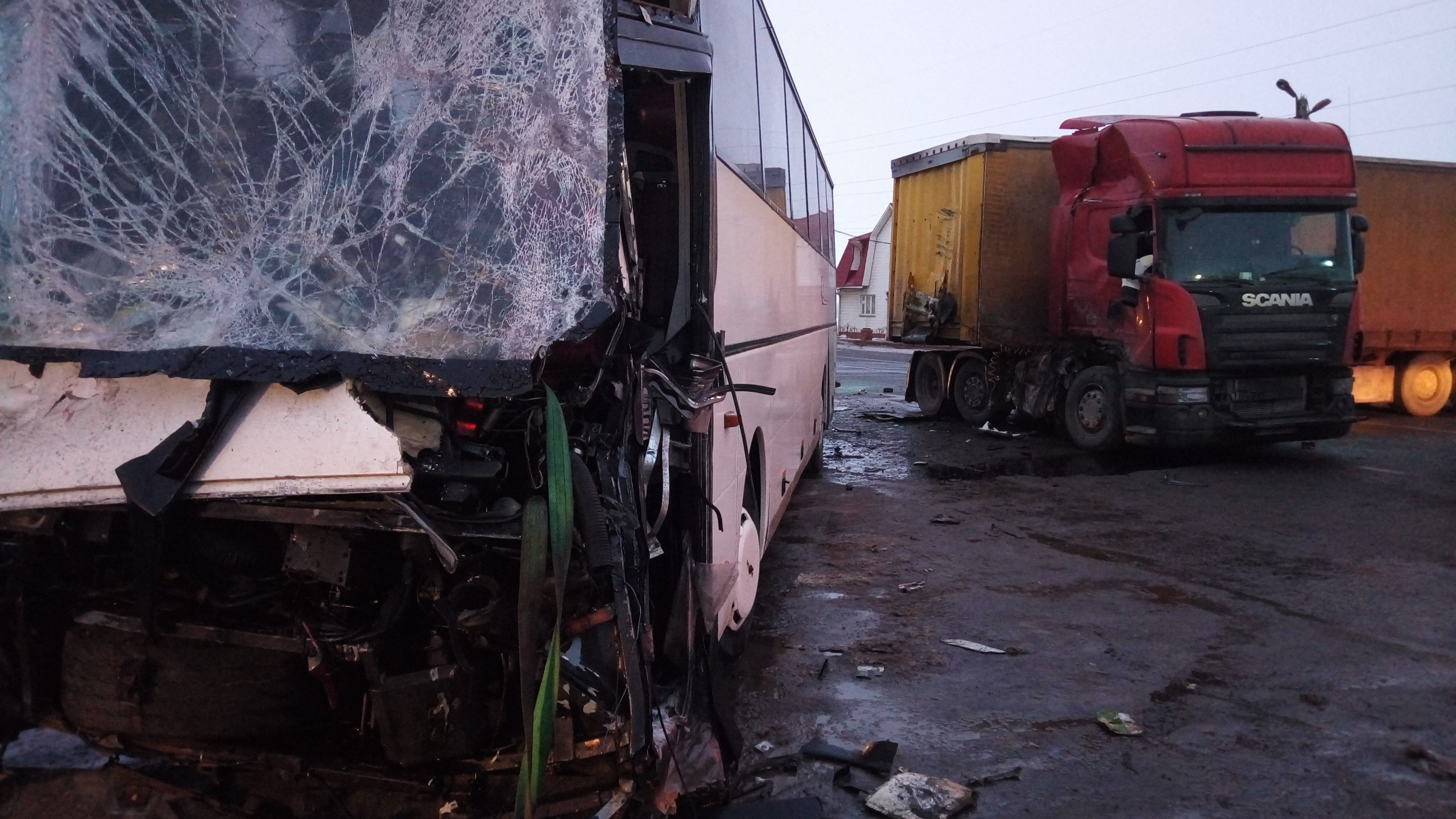 В автобусе «Москва-Новомичуринск» ехали 21 пассажир и водитель. По словам пассажиров, фура внезапно возникла перед автобусом. Водитель успел среагировать и начал торможение. Но столкновения избежать не удалось. Автобус въехал в бок фуры.