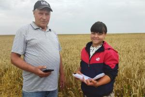 Виктор Вячеславович рассказал, что в этом году комбайны вышли на поля 25 июля, и за это время механизаторы успели убрать 3299 гектаров озимой пшеницы (ее в отделении «Горлово» 6000 га), намолотили 16 410 тонн зерна при средней урожайности 49, 7 ц/га. Хотя в первые дни эта цифра была выше 50 ц/га. За качеством зерна на начальном этапе следит учетчица Дарья Поташова (на снимке вместе с Виктором Чудайкиным).