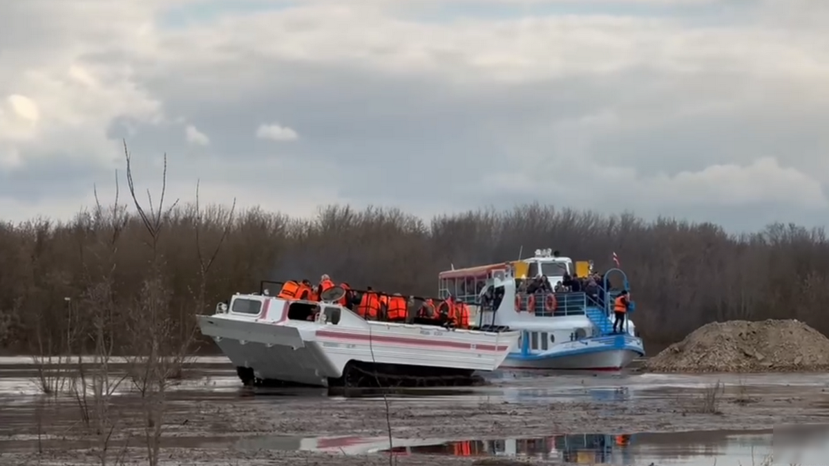 С 5 апреля гусеничный плавающий транспортер ПТС-М совершил 16 рейсов и перевез 569 человек, сообщили в региональном ГУ МЧС.