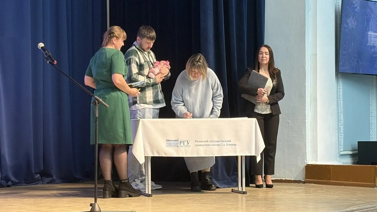 Дети родились в семьях у Михайловых и Цикиных. В обеих семьях – первый ребенок. Карин Кнайсль пожелала молодым родителям благополучия и вручила памятные знаки губернатора «Родившемуся на Рязанской земле».