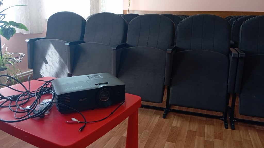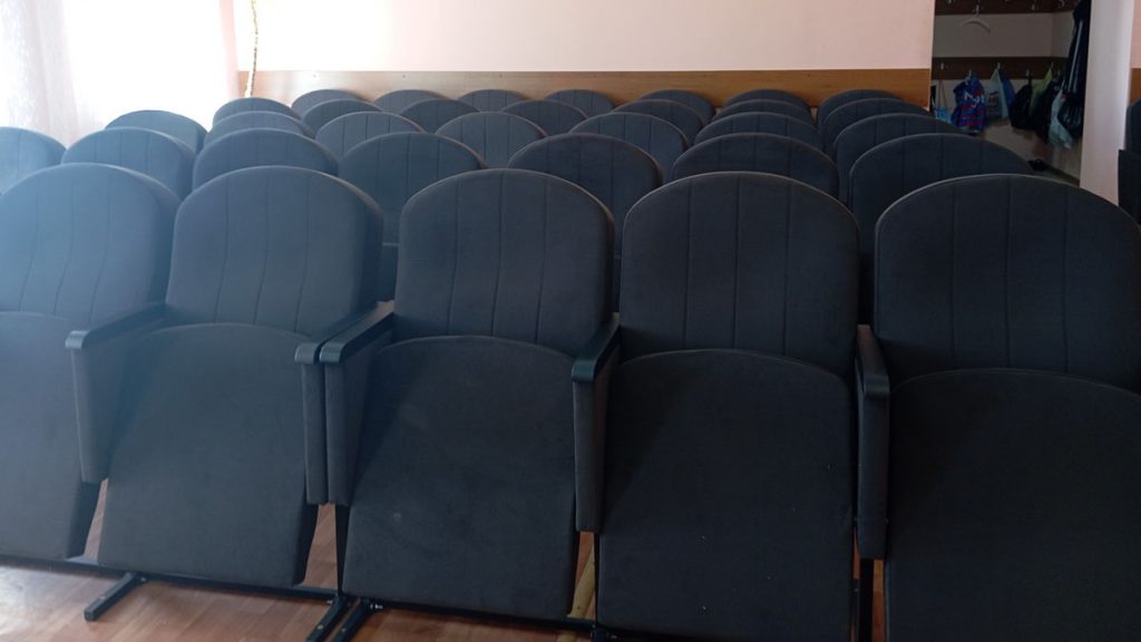 Новые удобные кресла появились в концертном зале. Специалисты смонтировали современное звуковое и световое оборудование, установили проекционный экран. В комплекте – новые колонки, микшерный пульт, ноутбук.