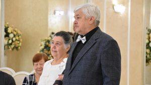 Наряду с регистрациями брака во Дворце торжеств в последний день года поздравляли супругов с солидным стажем семейной жизни. Обновили клятвы верности и супруги Юдаевы, которые 31 декабря отмечают 50-летие брака. Наталья и Анатолий были знакомы со школы, расписались после службы молодого человека в армии 31 декабря 1975 года. Секрет их счастливой пары -в терпении и прощении.