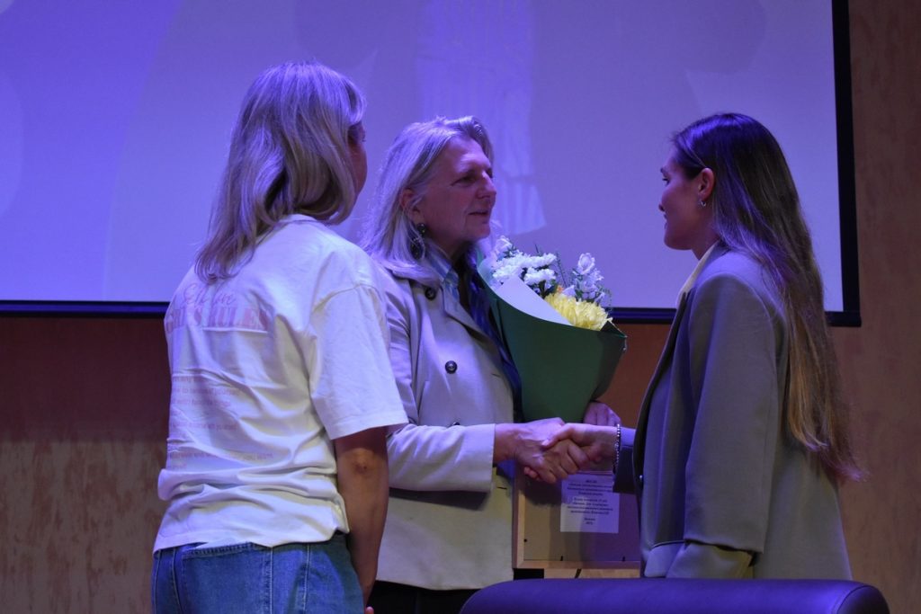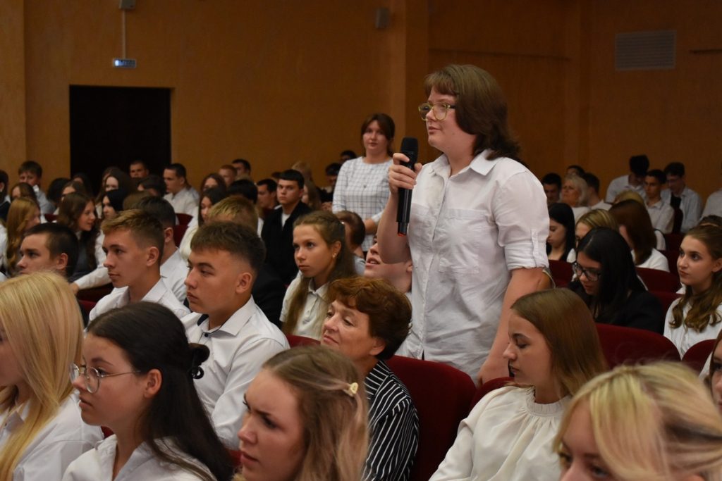 Затем Карин Кнайсль ответила на вопросы школьников и студентов. Их было много: о предпочтениях в еде, любимых произведениях, причинах переезда в Россию, отношении к городу Касимову и стране в целом.