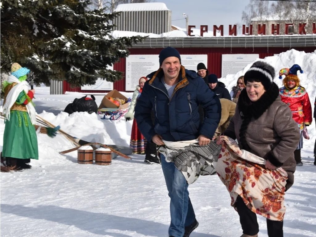 Ермишинцы проводили зиму конкурсами, песнями, румяными блинами