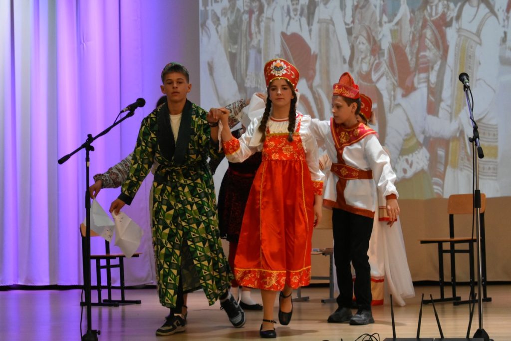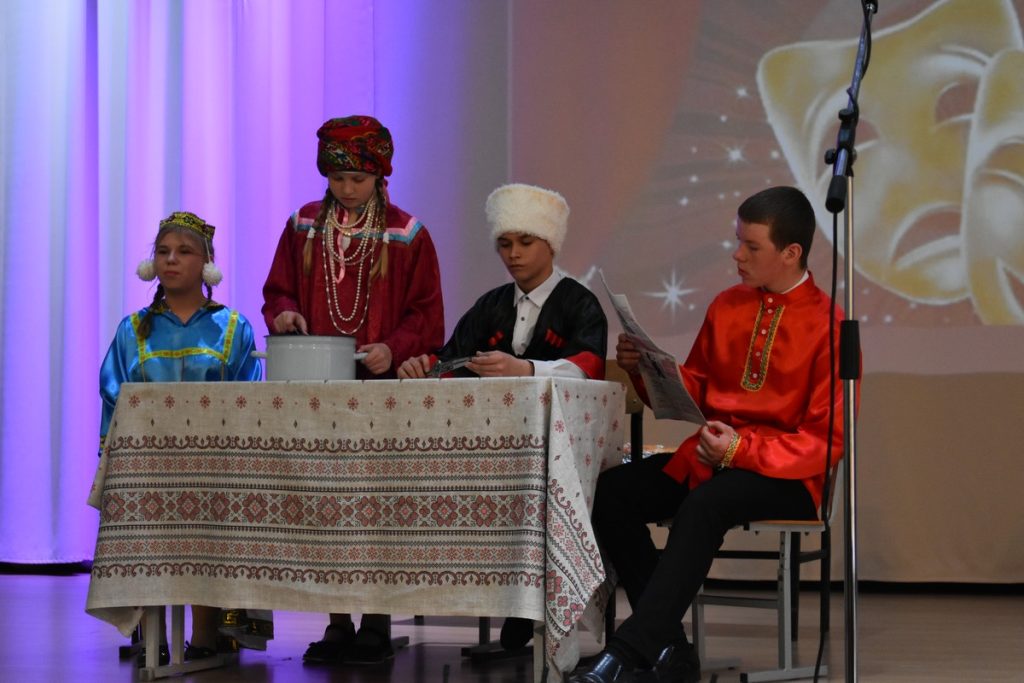 Кадомчане стали лучшими в номинации «Школьный театр». Их сценка «Единством сильна Россия» со множеством декораций, эффектных костюмов была высоко оценена жюри.