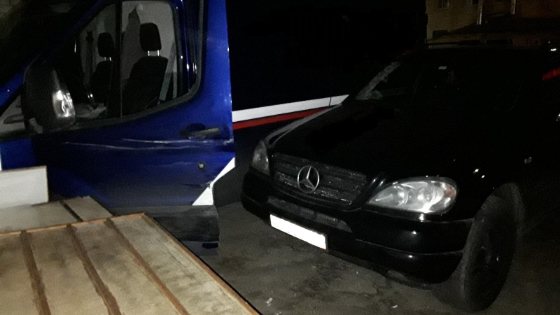 По предварительной информации, Ford был на стоянке. Автомобиль начал самопроизвольное движение. Водитель пытался остановить транспортное средство и столкнулся с припаркованным Mercedes.
