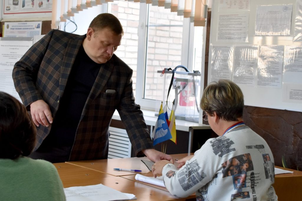 Глава администрации Михайловского округа Евгений Сидоров свой гражданский долг исполнил 14 сентября. На избирательный участок № 235, расположенный в здании Михайловского техникума имени Анатолия Мерзлова, Евгений Владимирович пришел с семьей.