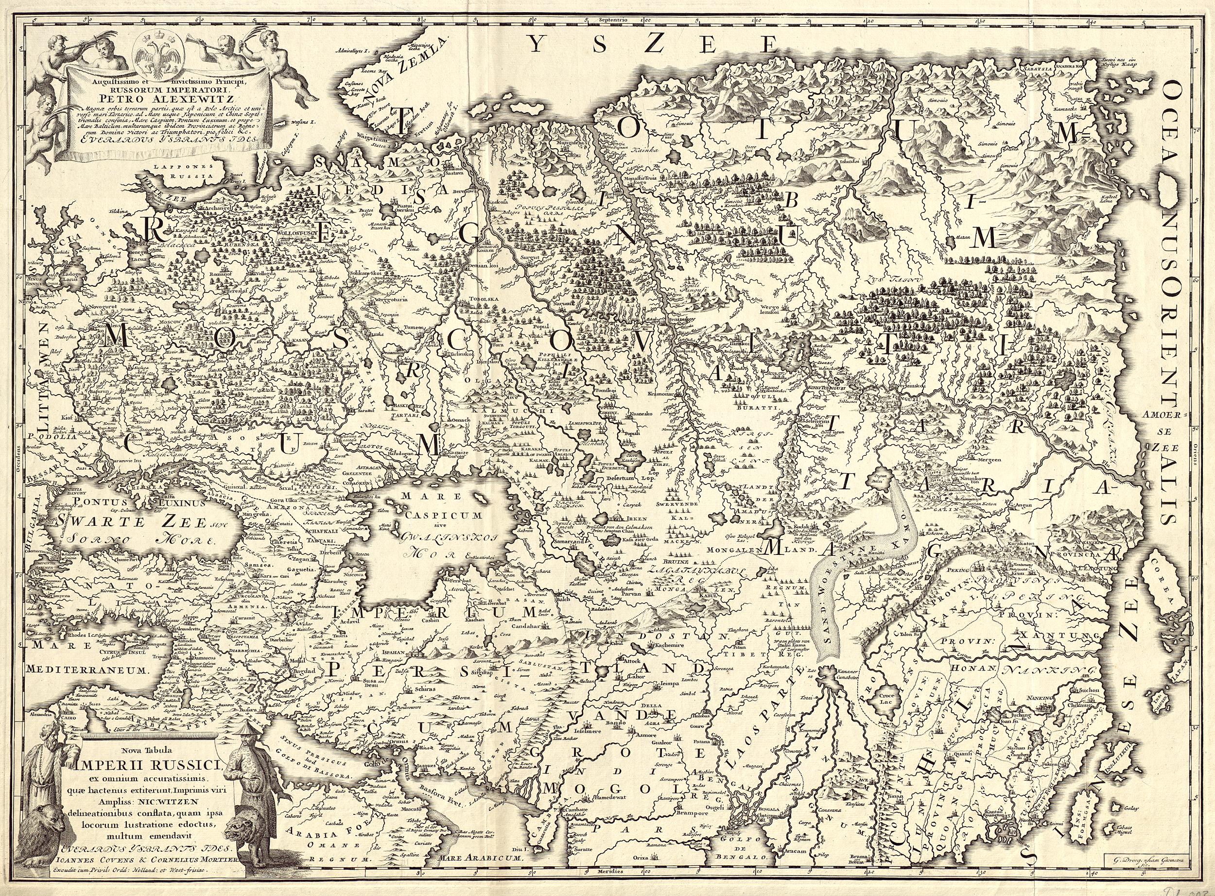 Петр Великий, образно говоря, нажал могучим плечом на во́рот истории, который подталкивал Россию к будущим выдающимся достижениям. Нас интересует большей частью то, как появилась у первого русского императора идея плавания через загадочный пролив Аниа́н, про который часто говорили, что его и вовсе не существует. Мечтой царя было добраться к далекой Америке и тамошним «городам европских владений», то есть колониям англичан, французов и испанцев.