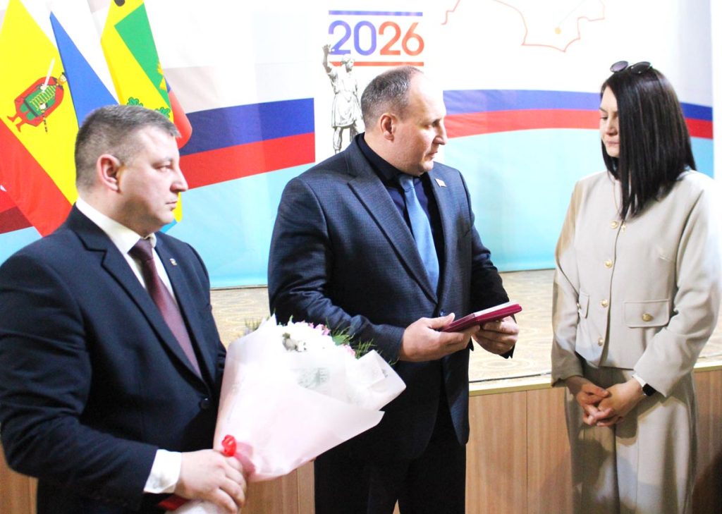 Валерий Юрьевич вместе с Михаилом Давыдовым вручили сараевцам благодарности от командования воинской части за помощь СВО. А свидетельства победителю и участникам муниципального этапа конкурса «Учитель года – 2026» вручали с Юрием Кулешовым.