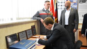 Павел Малков и Сергей Аноприенко осмотрели музей завода. Губернатор оставил запись в книге почетных гостей.
