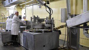 Предприятие, основанное в 1928 году, сейчас производит более 200 видов мясной продукции: консервы, паштеты, мясные деликатесы и многое другое. В 2024 году комбинат выпустил 10,1 миллиона условных банок консервов, за четыре месяца 2025 года – 3,6 миллиона условных банок консервов, а также 57 тонн колбасных изделий и 23 тонны полуфабрикатов. Товары продаются в крупных торговых сетях в Рязани и столичном регионе, собственных магазинах, на маркетплейсах. Губернатор Павел Малков и сенатор Сергей Аноприенко осмотрели производство, побывали на складе, а также изучили ассортимент продукции.