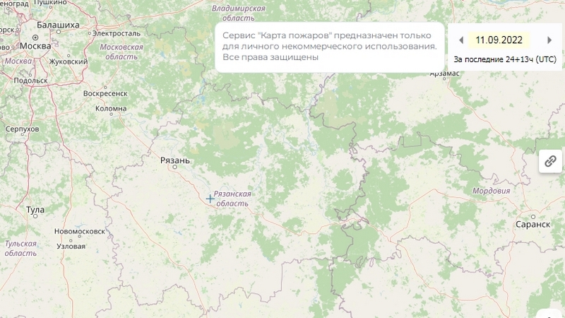 Сервис «Карта пожаров» также не показывает ни одной термоточки в Рязанской области.