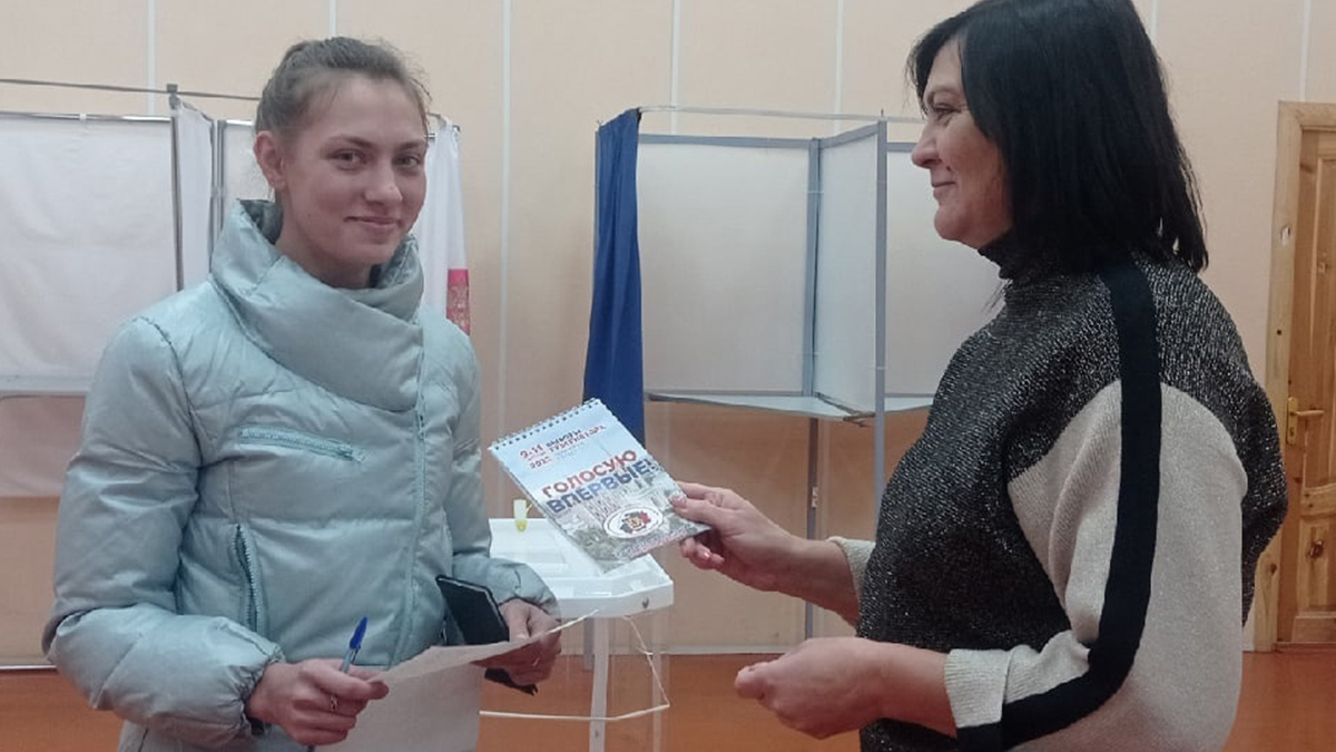 Второй день голосования на избирательном участке № 779 в селе Черная Слобода Шацкого района начался с приятного момента. Председатель участковой комиссии Оксана Стельмах вручила Ирине Ваниной подарок – как впервые проголосовавшей.