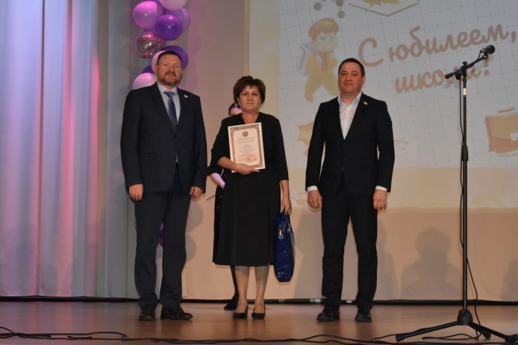Почетные грамоты, благодарности и ценные подарки районного и областного уровня получили более 20 работников школы. Педагогам-ветеранам ученики вручили цветы. Свои музыкальные поздравления подарили ученики, педагоги школы, артисты Кадомского Дома культуры и студенты Сасовского летного училища. Гости пели, танцевали, играли на саксофоне и обещали приехать на 150-летний юбилей.