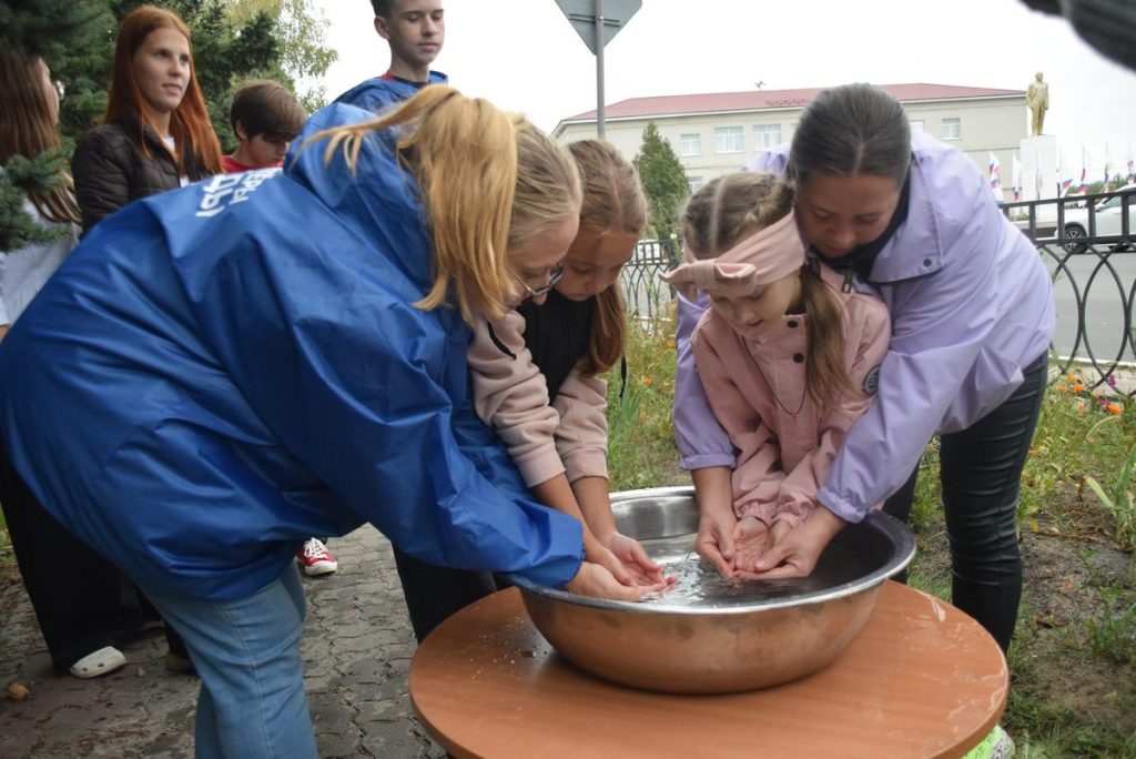 Память погибших почтили минутой молчания. После участники акции набирали воду в ладони и поливали из рук цветы и деревья возле памятника Героям Советского Союза, символически делясь водой с погибшими.
