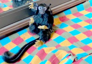 «Обычно у красноруких тамаринов в одном выводке пара детенышей, за которыми ухаживает самец. А наша Мико в выводке была третьей. Кроме того, родилась она с парализованными задними лапками. И мы с супругом, выслушав все рекомендации ветврача, взяли слабенькую Мико к себе домой. Мы ее вылечили, но осталась небольшая деформация задних конечностей, что совершенно не мешает очень быстро бегать. Вот так три года назад она стала членом нашей семьи. Всегда старается смотреть, кто пришёл. Выбегает встречать», — рассказала хозяйка Мико Анастасия.
