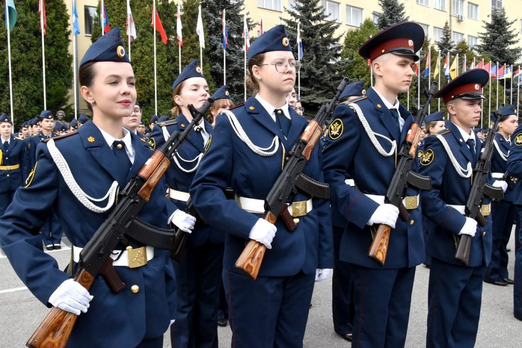 Для гостей Академии ФСИН России выступил парадный расчет барабанщиц. Курсанты также исполнили гимн вуза.