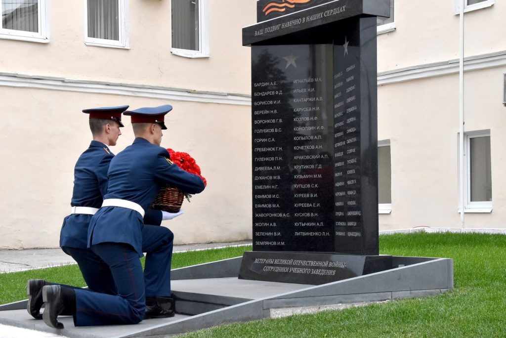 После присяги курсанты возложили гирлянду к стеле выпускникам, погибшим при выполнении служебного долга. Также возложили цветы и к памятнику сотрудникам вуза, воевавшим во время Великой Отечественной войны.