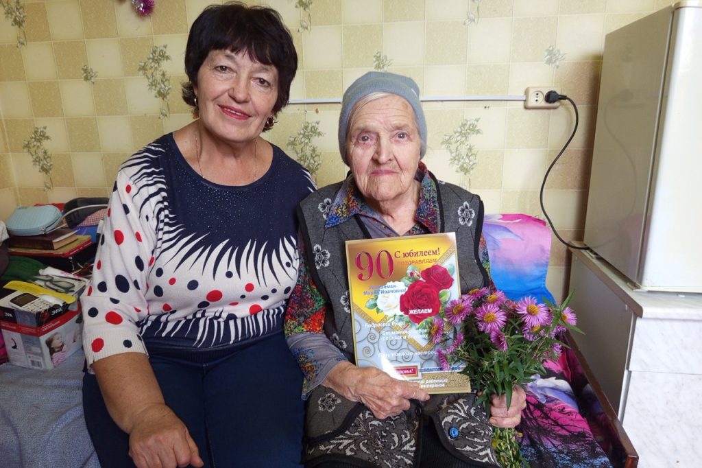 Юбиляршу поздравила председатель совета ветеранов Татьяна Михалина, она вручила Марии Ивановне памятные подарки. Гостья пожелала Марии Ивановне крепкого здоровья, долгих лет жизни и бодрости духа.