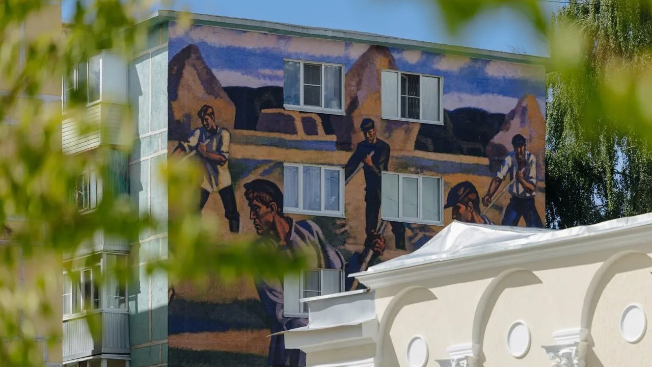 На доме рядом с Рязанской ВДНХ появилась масштабная копия работы народного художника СССР Виктора Ивановича Иванова «Косцы», сообщил в своем телеграм-канале губернатор Рязанской области Павел Малков: