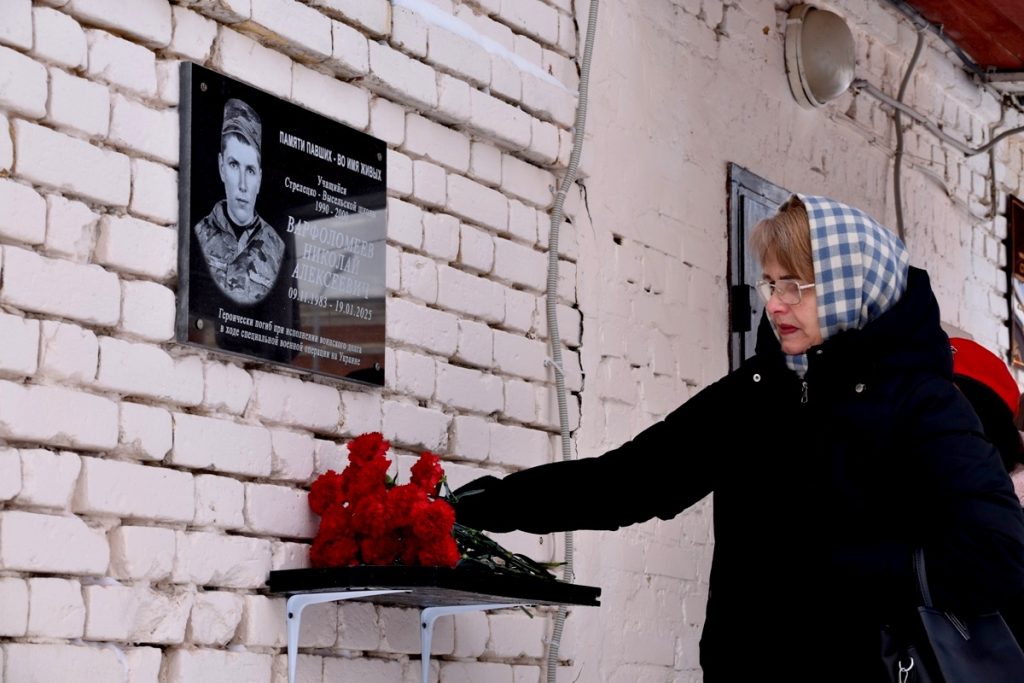 Мемориальную доску в честь участника спецоперации Николая Варфоломеева открыли в Михайловском округе