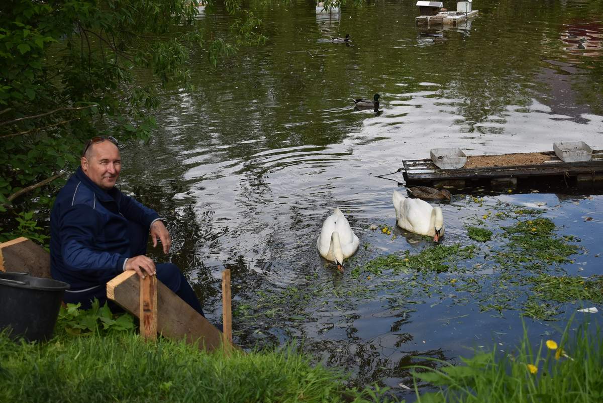«Лебеди поселились у нас три года назад. Это подарок селу от председателя Рязанской областной Думы Аркадия Фомина. Лебединая пара – украшение нашего пруда. Они дружно соседствуют с дикими утками. Вместе едят, плавают, вместе зимуют в моем дворе. А вот чужих птиц гонят с пруда вон! Сельчане помогают обеспечивать пернатых овощами, хозяйство выделяет зерно. Желудевцы любят своих лебедей, да и как иначе? Посмотрите, какая красота! Я мастерю для них плавучие домики, островки для отдыха. На будущий год, если все будет хорошо, будем делать лебедушке гнездо и ждать потомство. Вот было бы здорово! А пока на яичках сидят утицы. Скоро на глади пруда появятся желто-коричневые пушистики».