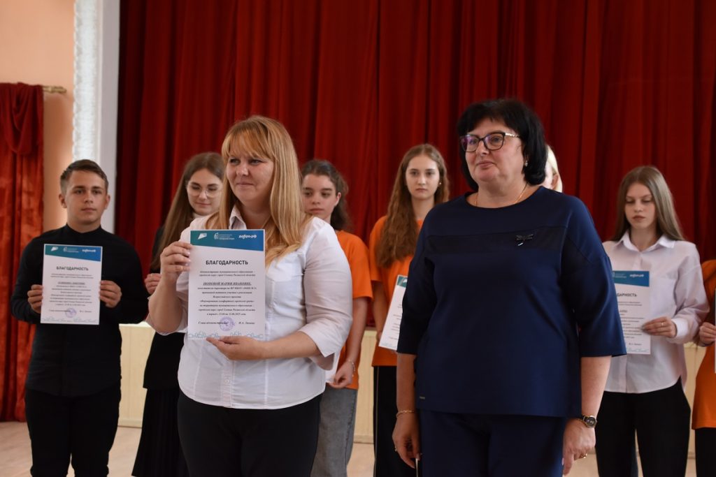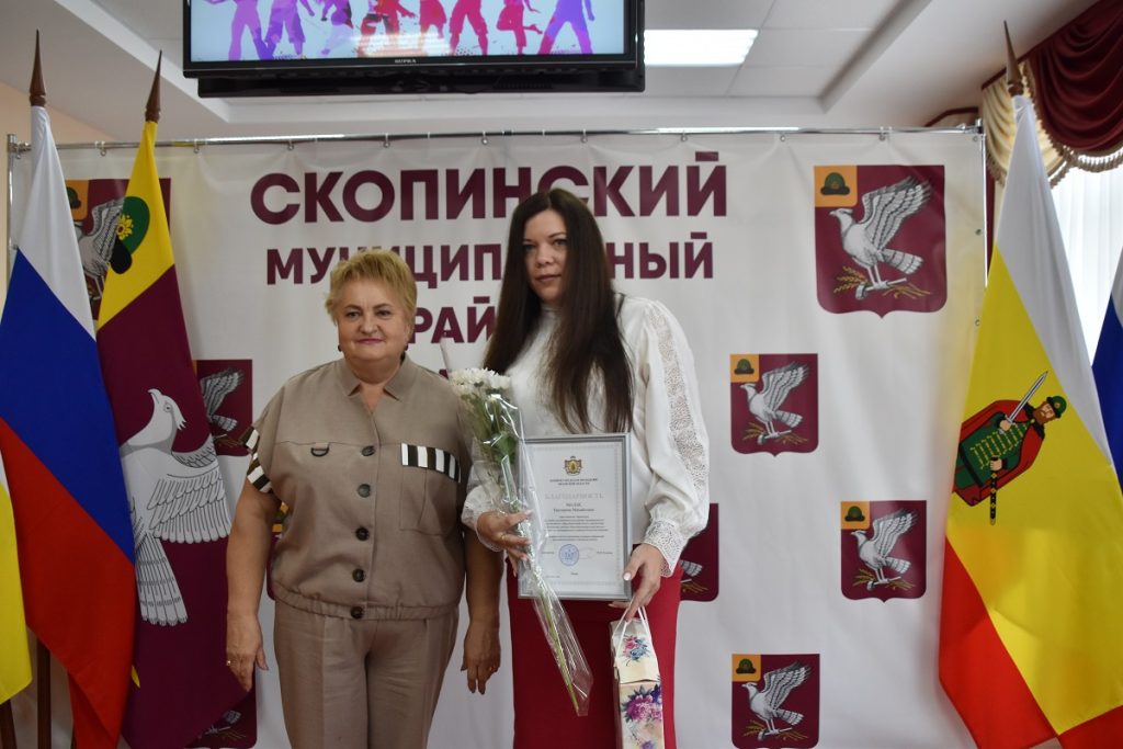 Награды активистам вручили и.о. главы администрации города Ирина Ланина, начальник управления образования и молодежной политики Скопина Галина Буценко, волонтер серебряного возраста Елена Черная, председатель Совета местного отделения «Движения первых» Наталья Гусева.