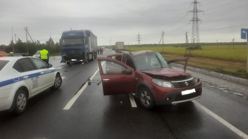 13 сентября около 10 часов утра на 210-м километре федеральной трассы Р-22 «Каспий» столкнулись большегрузный автомобиль Ford и легковой Renault Sandero.