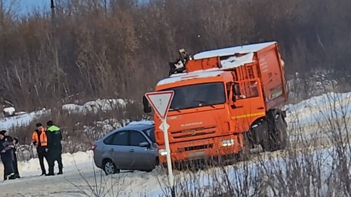На въезде в Чучково столкнулись КамАЗ и «Лада Гранта»