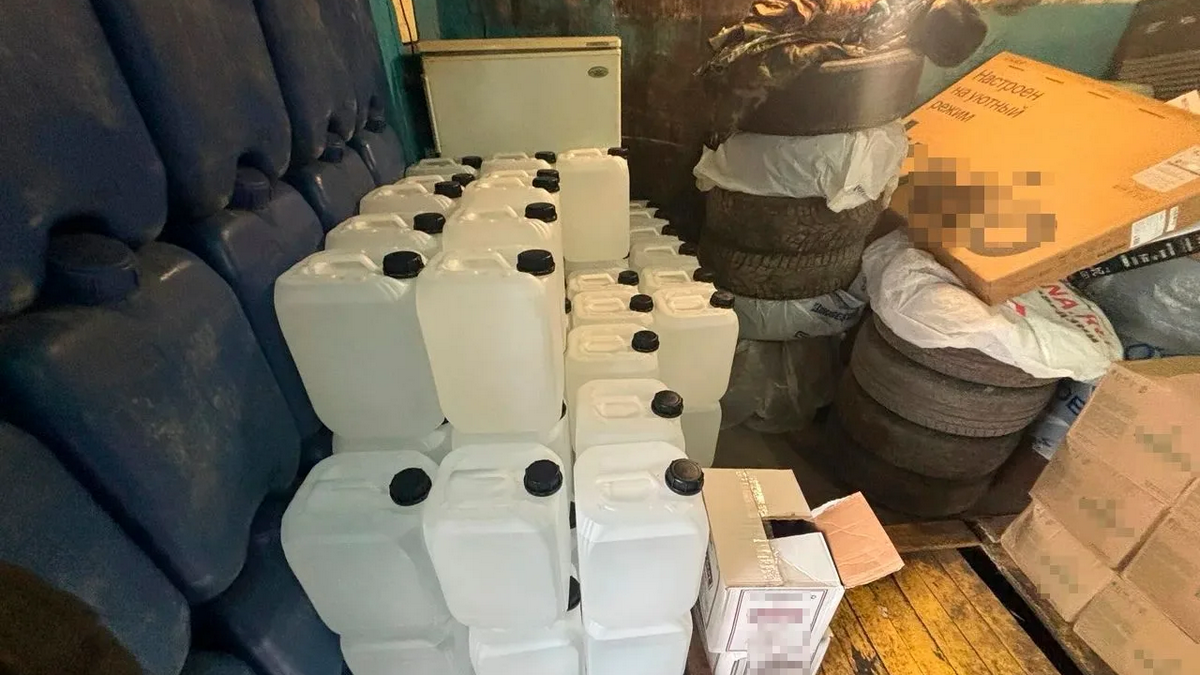 В гараже обнаружили пластиковые емкости с спиртосодержащей жидкостью и 260 бутылок с фальсификатом. Общий объем изъятого составил 930 литров. Также изъяли две бочки с кранами для наполнения бутылок, пустую тару, пробки и этикетки.