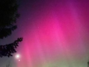 «Около десяти часов вечера посмотрела в окно и заметила, что небо необычного цвета. Вышла на улицу, а там – полярное сияние! Больше получаса оно озаряло небосвод участками, и было очень красивым».