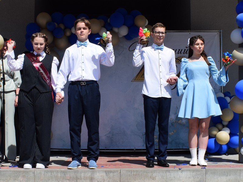 Выпускники закружились в прощальном вальсе, а затем прозвенел последний школьный звонок. На прощанье ребята выпустили в небо воздушные шары.