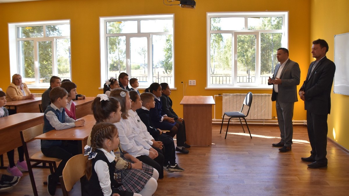 На школьном дворе перед занятиями на торжественной линейке ученики и преподаватели под гимн Российской Федерации равнялись на государственный флаг. Затем школьники собрались на первый «Разговор о важном», его провел для них Игорь Тишин. Игорь Николаевич говорил о семье и школе, о дружбе и уважении к старшим. Поговорили и о целях, которых нужно ставить и добиваться.