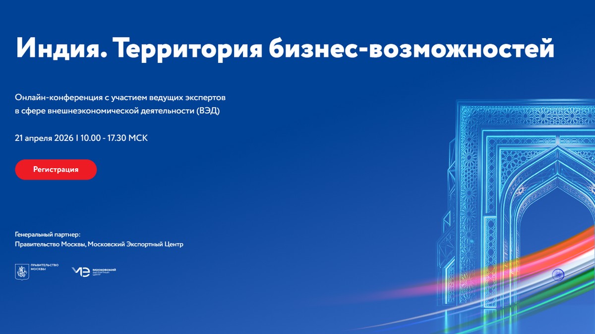 21 апреля с 10:00 до 17:30 (мск) состоится онлайн-конференция «Индия: территория бизнес-возможностей», которая станет практическим навигатором для российских компаний, стремящихся на рынки Южной Азии. Мероприятие организовано Российским экспортным центром (РЭЦ, Группа ВЭБ.РФ), генеральными партнерами выступают Правительство Москвы и Московский экспортный центр. Участие бесплатное, но нужно пройти регистрацию.
