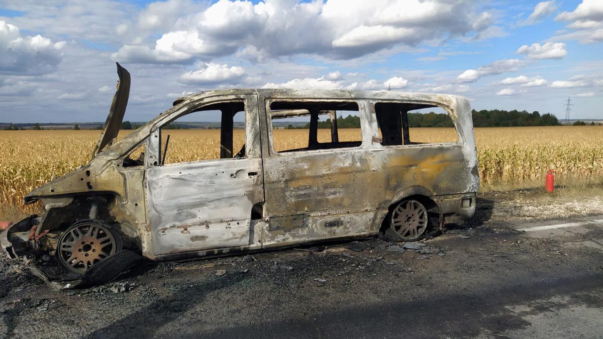 Прибывший на место ЧП пожарный расчет из Новомичуринского «Центра 112» за считанные минуты погасил полыхающий микроавтобус. От него остался лишь каркас.