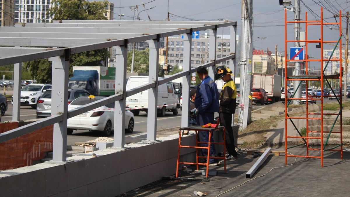 Сейчас монтируют новые навесы, отделывают полы пешеходного перехода, устанавливают гранитные плитки на лестнице. В переходе заменили освещение.