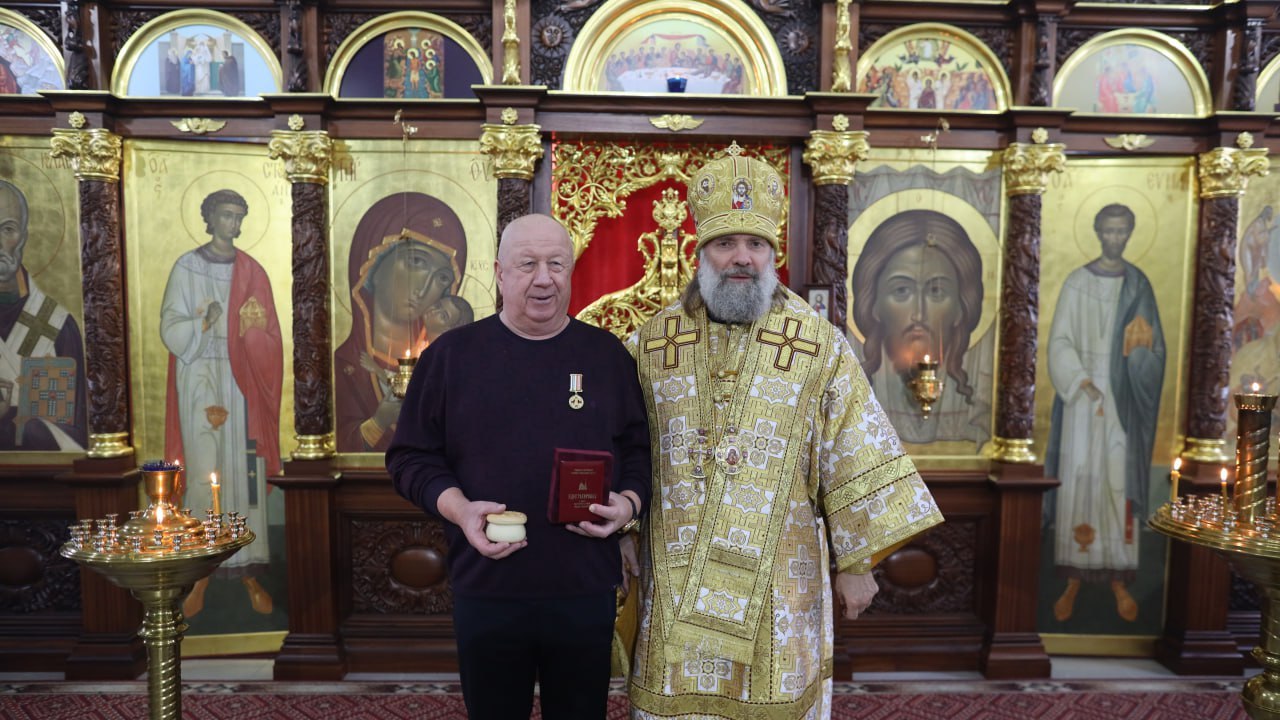 Епископ Скопинский и Шацкий Питирим вручил генеральному директору АО «имени генерала Скобелева» Михаилу Глазкову медаль Рязанской митрополии за активное участие в благотворительности в рамках СВО, тесное взаимодействие с приходом села Заборово, а также в связи с 70-летним юбилеем.