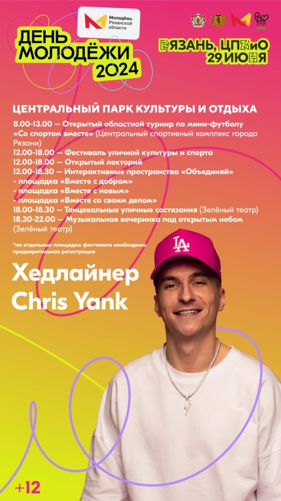 С 18.00 до 18.30 всех желающих ждут на танцевальные соревнования в Зеленый театр. С 18.30 до 22.00 там же пройдет музыкальная вечеринка. Хедлайнером ее станет Chris Yank.