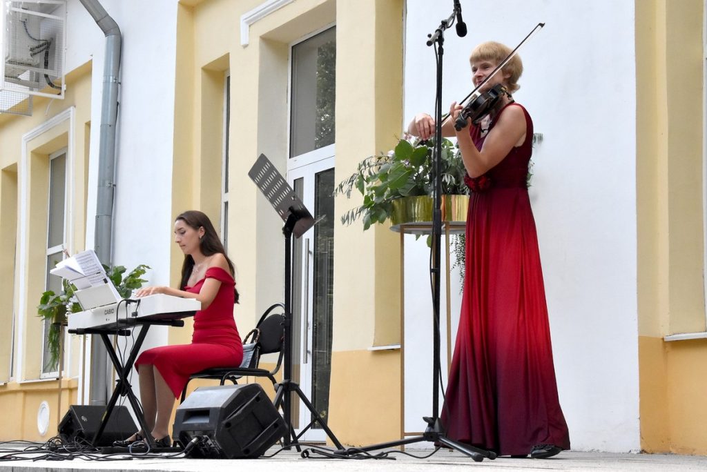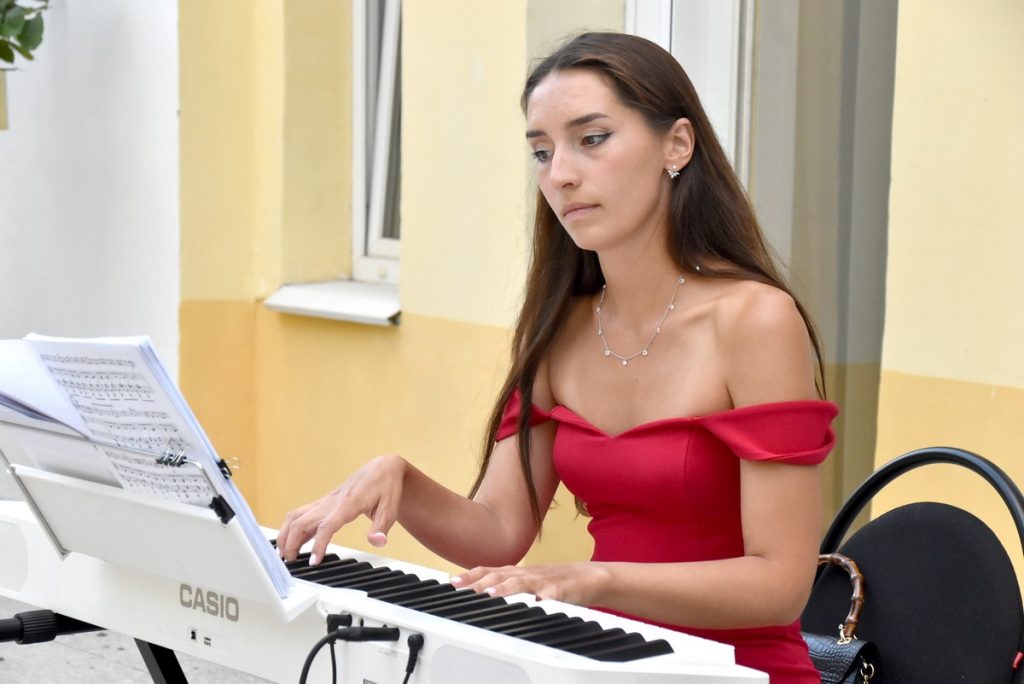 «На улице я не первый раз играю. По сравнению с залом, здесь сложнее выступать: хуже слышишь напарника, могут улететь ноты и уехать педали электронного фортепиано. Но зрители под открытым небом более расслаблены, могут также прийти послушать и простые прохожие. Музыкой я занимаюсь с четырех лет. Я в музыке нахожу огромный простор для творчества. Может показаться, что композитор уже все написал, но здесь каждый слышит свое и есть место для интерпретации».