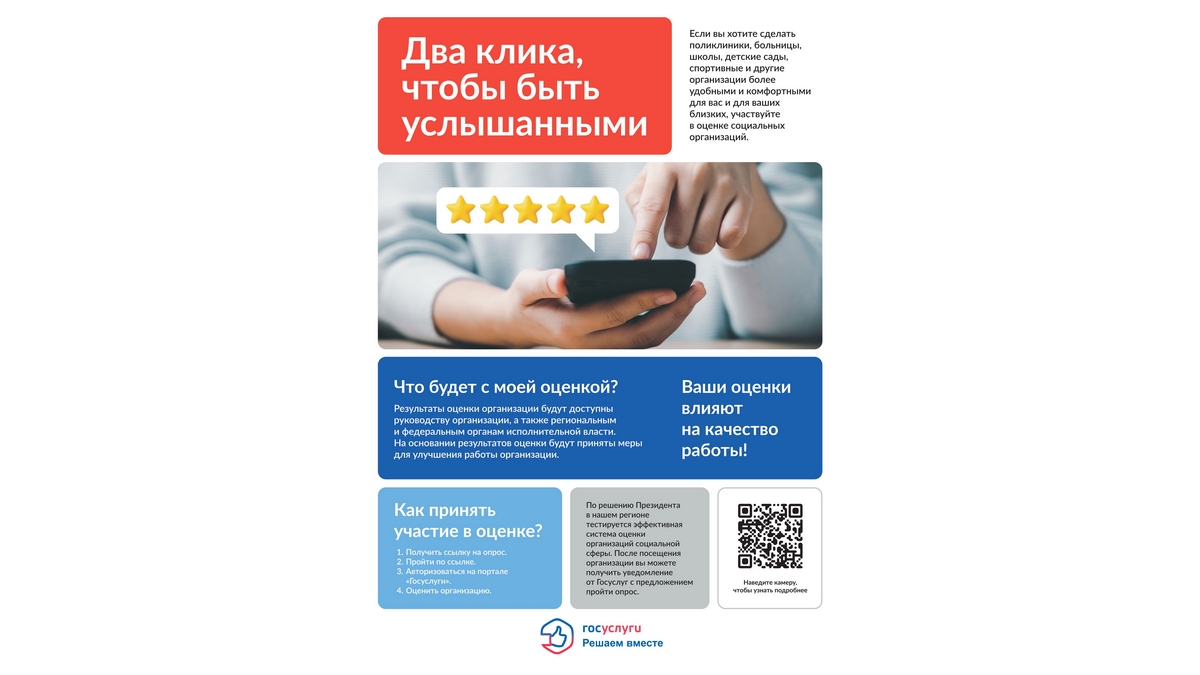 Критерии оценки – доступность информации о работе организации, доброжелательность сотрудников, чистоту и комфорт помещений, наличие безбарьерной среды. Пройти опрос могут граждане, зарегистрированные на портале Госуслуг.