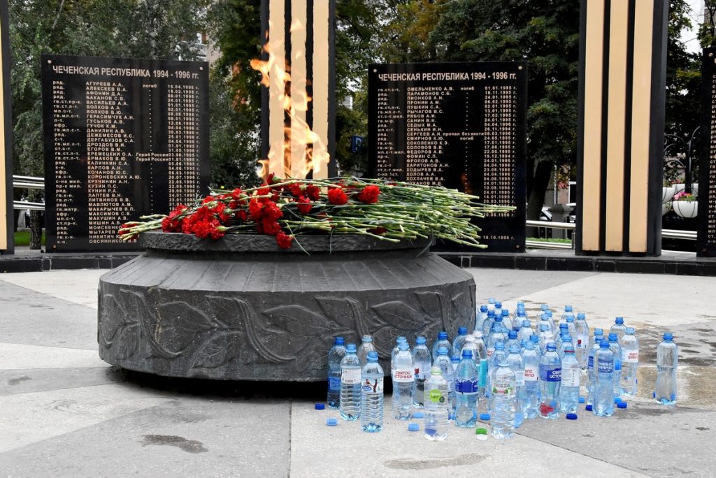Представители региональной власти и общественных организаций, школьники и студенты возложили к мемориалу цветы и бутылки с водой.