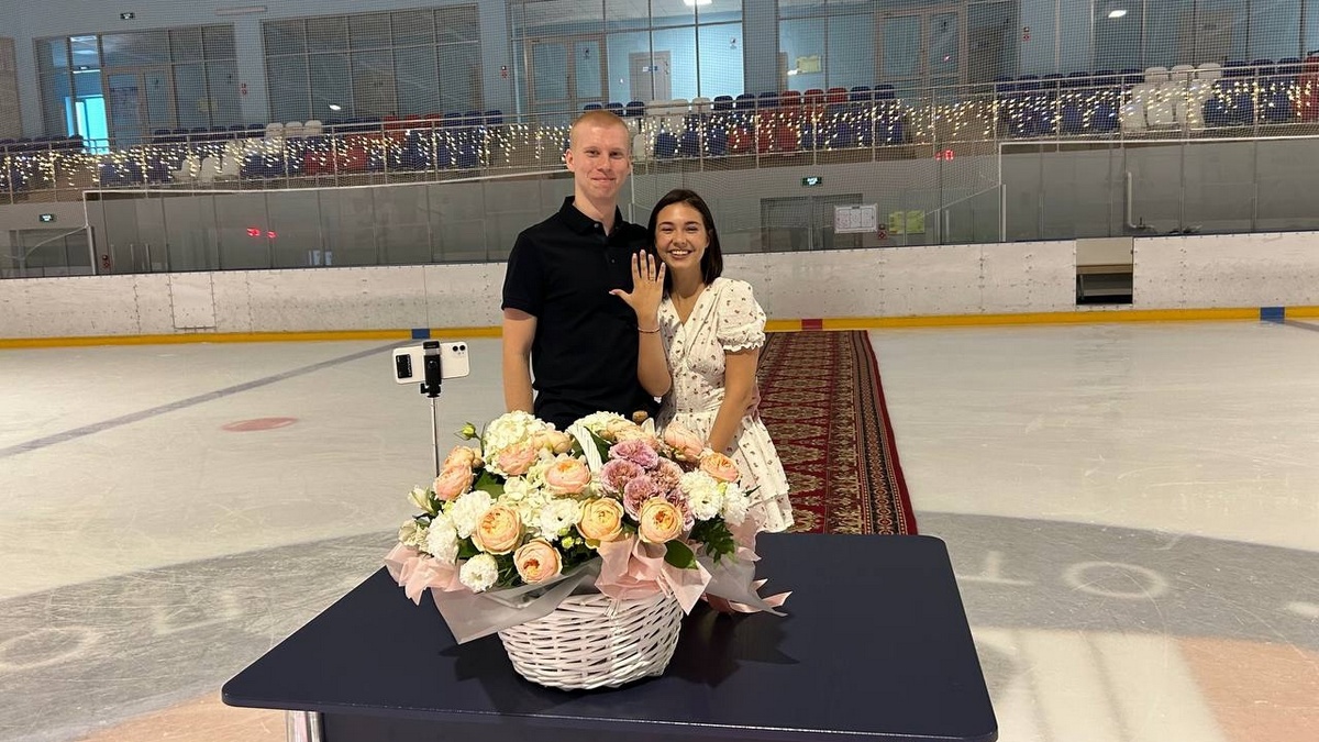 Рязанец по имени Леонид сделал предложение любимой девушке Ирине на катке «Айсберг». О событии сообщила пресс-служба ледовой арены.