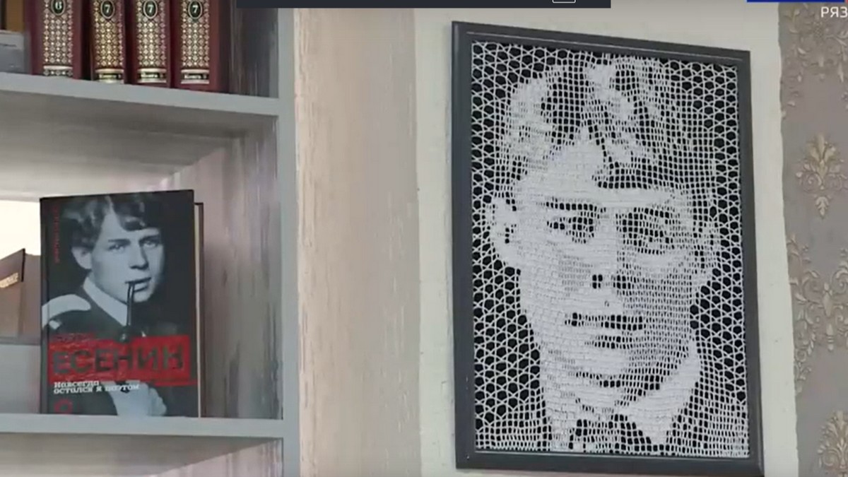 Рязанка Ольга Абрамкина связала портрет Сергея Есенина крючком. О мастерице рассказала ГТРК «Ока».