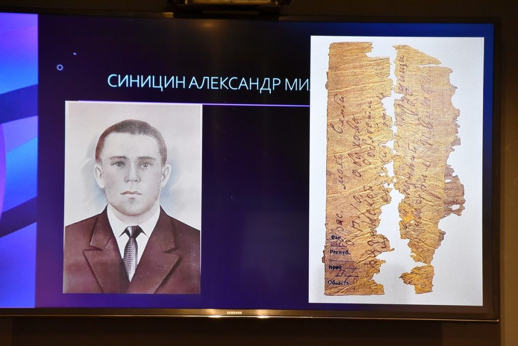 «Этот молодой парень погиб в 1941 году при обороне подступа к Москве – Варшавского шоссе. При нем был смертный медальон. В нем Александр Михайлович просил в случае гибели сообщить об этом домой. На захоронении было много людей. Родственники из другого района принесли фото, о котором мы вообще не знали. У Александра Синицына не было ни жены, ни детей, но люди хранили память о нем. Для них это важно».