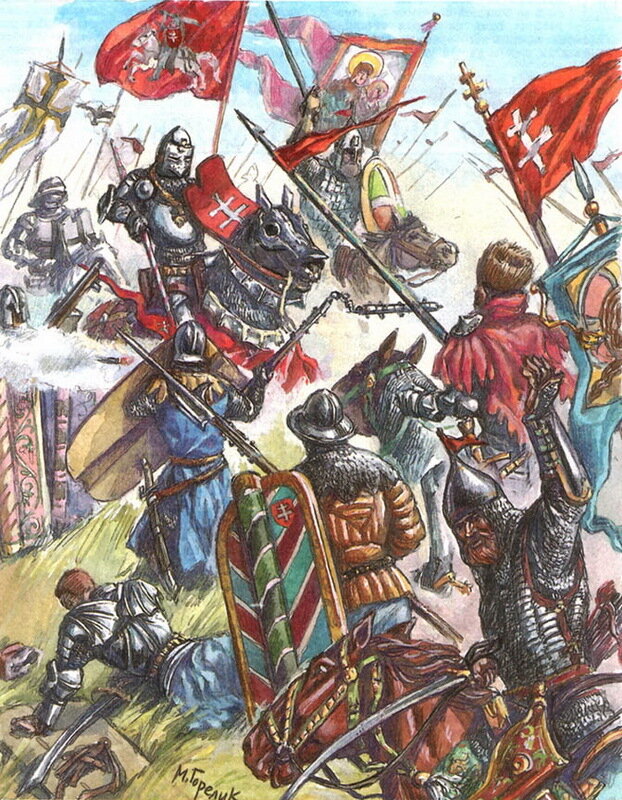 Внук такого выдающегося человека, как Олег Рязанский, был принят королем с уважением. Однако удержать его во дворце Ягайло не сумел – или не захотел… Воину место на поле боя! Уже в пятнадцать лет юный князь «держит хоругвь», то есть, по сути, командует подразделением рыцарей в знаменитой Грюнвальдской битве. Тогда войска польско-литовского союза в тяжелом сражении разбили тевтонцев, изменив баланс сил в восточной Европе. Сигизмунд Корибутович тогда же познакомился с командиром чешских воинов Яном Жижкой, которому скоро предстояло сыграть главную роль в событиях Гуситских войн.